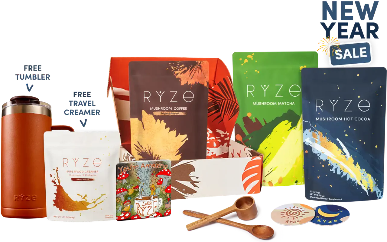 A good day starts the night before which is why we’ve created a daily ritual that gives you all day energy, a good night’s sleep and more functional benefits than we can count. Pair RYZE Mushroom coffee or Matcha in the morning with RYZE Mushroom Hot Cocoa in the evening for a feel good routine you can count on. Bundle comes with exclusive free gifts and the lowest price per serving to complete your daily ritual.